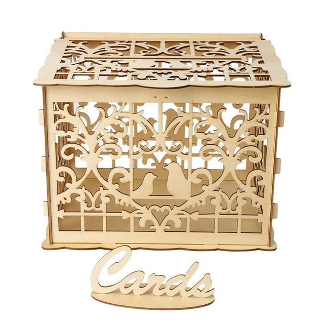 Wooden wedding gift box wooden card